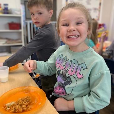 All meals prepared on site with an emphasis on child-friendly foods. We provide a healthy lunch and 2 snacks daily for toddler age and older. There is an optional breakfast plan available (additional fee). Infants have individualized feeding and nap schedules.
